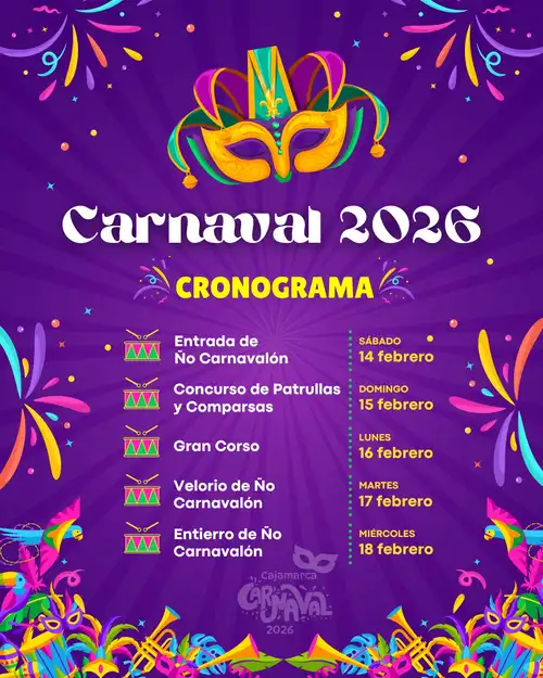 Asimismo, se dio a conocer el cronograma de las principales actividades tradicionales del carnaval: el 14 de febrero se realizará la entrada de Ño Carnavalón; el 15 de febrero, el concurso de patrullas y comparsas; el 16 de febrero, el tradicional corso carnavalesco; el 17 de febrero, el velorio de Ño Carnavalón; y el 18 de febrero, el entierro del Rey Momo, acto que marca el cierre oficial de las celebraciones.