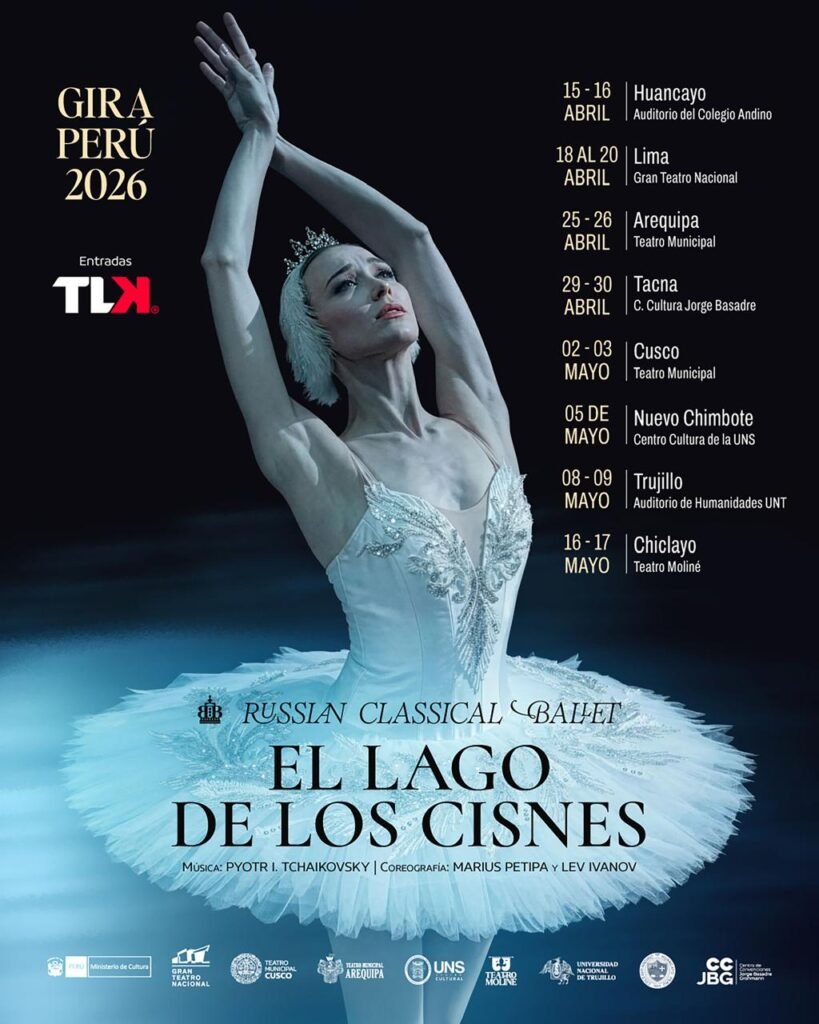 Tras el éxito de ventas de su temporada en la capital, “El Lago de los Cisnes” anuncia un tour sin precedentes por el Perú. El Russian Classical Ballet llevará el ballet más célebre del repertorio universal a ocho ciudades del país como parte de la “Gira Perú 2026”, una temporada que recorrerá distintos escenarios nacionales durante los meses de abril y mayo.