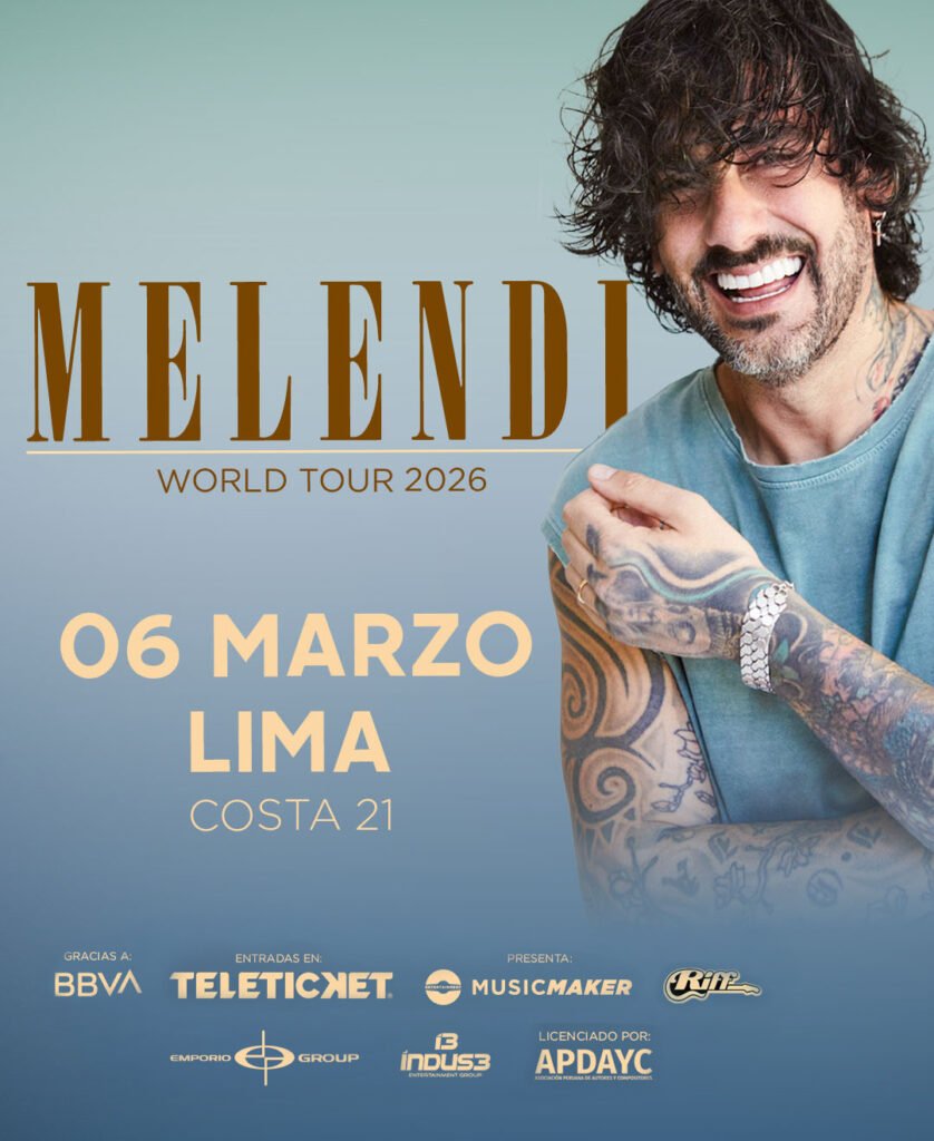 El cantautor español Melendi anunció para este 2026 nueva gira por Latinoamérica y además el lanzamiento de su duodécimo álbum “Pop Rock” que incluirá 12 temas inéditos. Melendi, ha incluido en su gira latinoamericana “Tareas Pendientes World Tour” a Perú para presentarse el 6 de marzo en Costa 21.