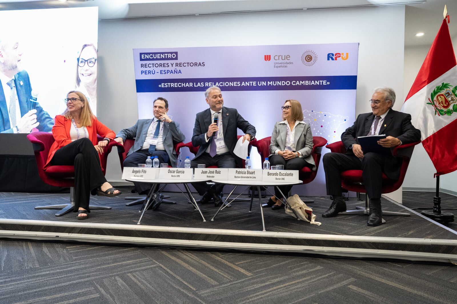 El evento, organizado por la Conferencia de Rectores de las Universidades Españolas (CRUE) junto con la Pontificia Universidad Católica del Perú, congregó a autoridades de universidades peruanas y españolas, quienes sostuvieron mesas de diálogo orientadas a fortalecer la cooperación académica, la innovación educativa, la empleabilidad y el impacto de la inteligencia artificial en la formación profesional.
