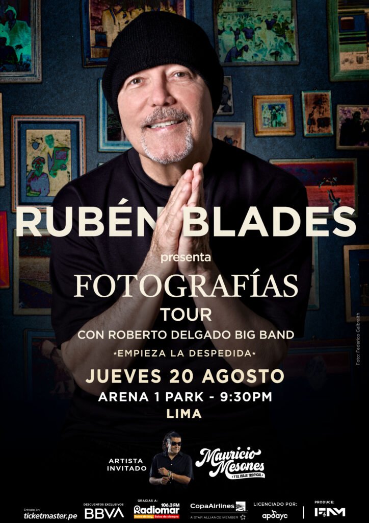 Este 20 de agosto, Lima volverá a encontrarse con una de las voces más importantes de la música latinoamericana. En el Arena Park, Rubén Blades llegará con su “Fotografías Tour”, que en esta ocasión muy especial, marca el inicio de su despedida de las giras y que tendrá en el Perú una de sus paradas más significativas. Preventa de entradas el 9 y 10 de abril con tarjetas BBVA. Venta general 11 de abril en Ticketmaster