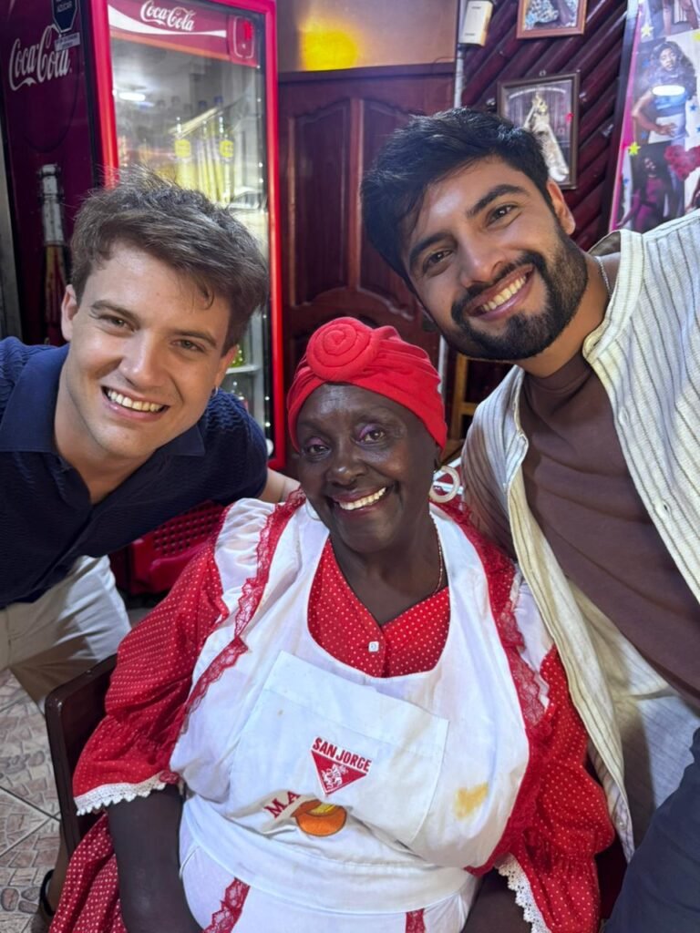 Sin embargo, él no sería el único personaje que tendrá una aparición en “AMIGO, POR AHÍ NO ES”. Pues también se filtró otra fotografía donde aparece la cocinera y célebre representante de la comida chinchana Esther Cartagena, popularmente conocida Mamainé, quien aparece posando al lado de los protagonistas de la película Jassir Yunis y Mathias Spitzer.